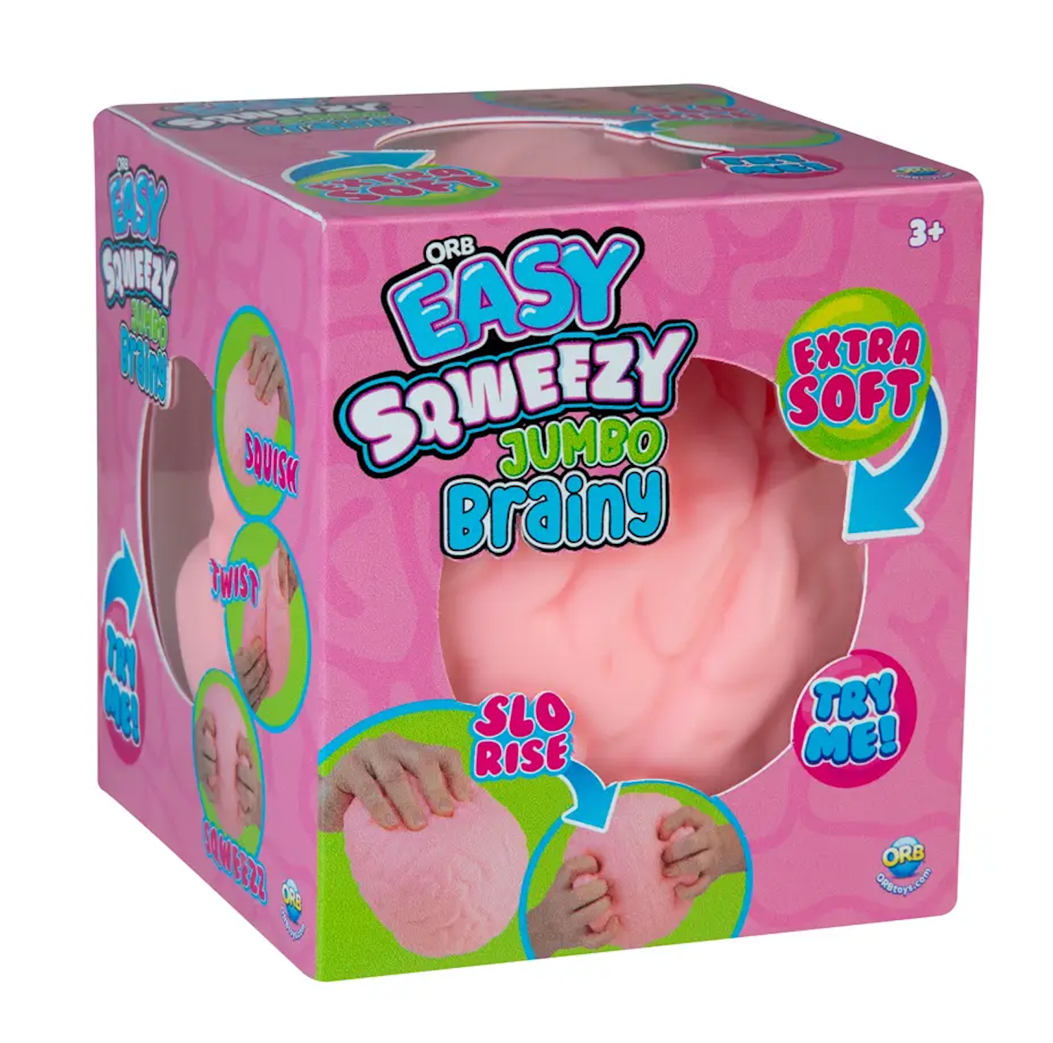 All that thinking worn your out? Brain feeling a little squishy? We've got you! New from ORB Toys, Jumbo Brain! So much fun to sqweezze, squish, and twist. The Easy Sqweezy Jumbo Brain measures 5"" in diameter. Perfect for calming all those busy brain cells -- just sqweeze and feel all that stress slip away