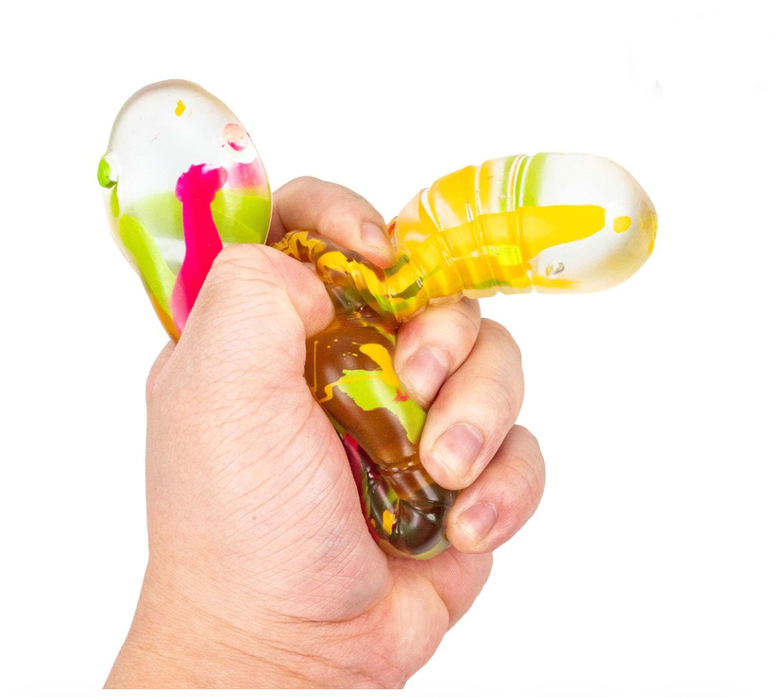 Explore the sensory experience of paint without the mess! This irresistible snake sensory toy is sure to become a best seller in your store. Each toy has a unique mix of paint drips which have been safely sealed within the toy. Perfect for adding a touch of extra fun to your merchandising displays. Enjoy a tactile adventure as you squeeze and squish, watching as the mesmerising drops of paint glide through your fingers. Explore a variety of vibrant colours, and let our branding and displays invite you into a sensory play adventure with Inkerz – where playfulness meets innovation!