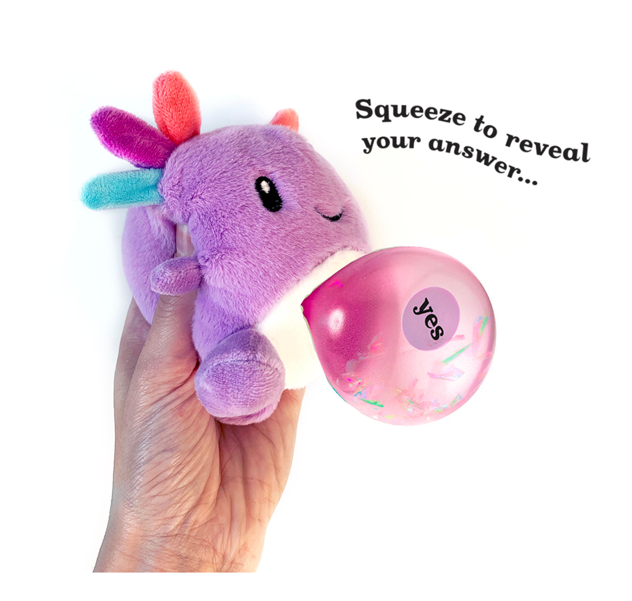 It's the Plush magic squishy waterball toy with all the answers in fun animal shapes. Ask it a question and squeeze to reveal your "Yes" or "No" answer. Our squishy water ball toys are suitable for kids and adults alike. Whether you're looking for a fun way to relieve stress or a unique toy for your child, these squishy balls are a fantastic choice. Made with high-quality materials, these toys are designed to withstand hours of squeezing, squishing, and tossing. This toy has a fun tactile feel that is great for stress release, fidgeting or just having fun!