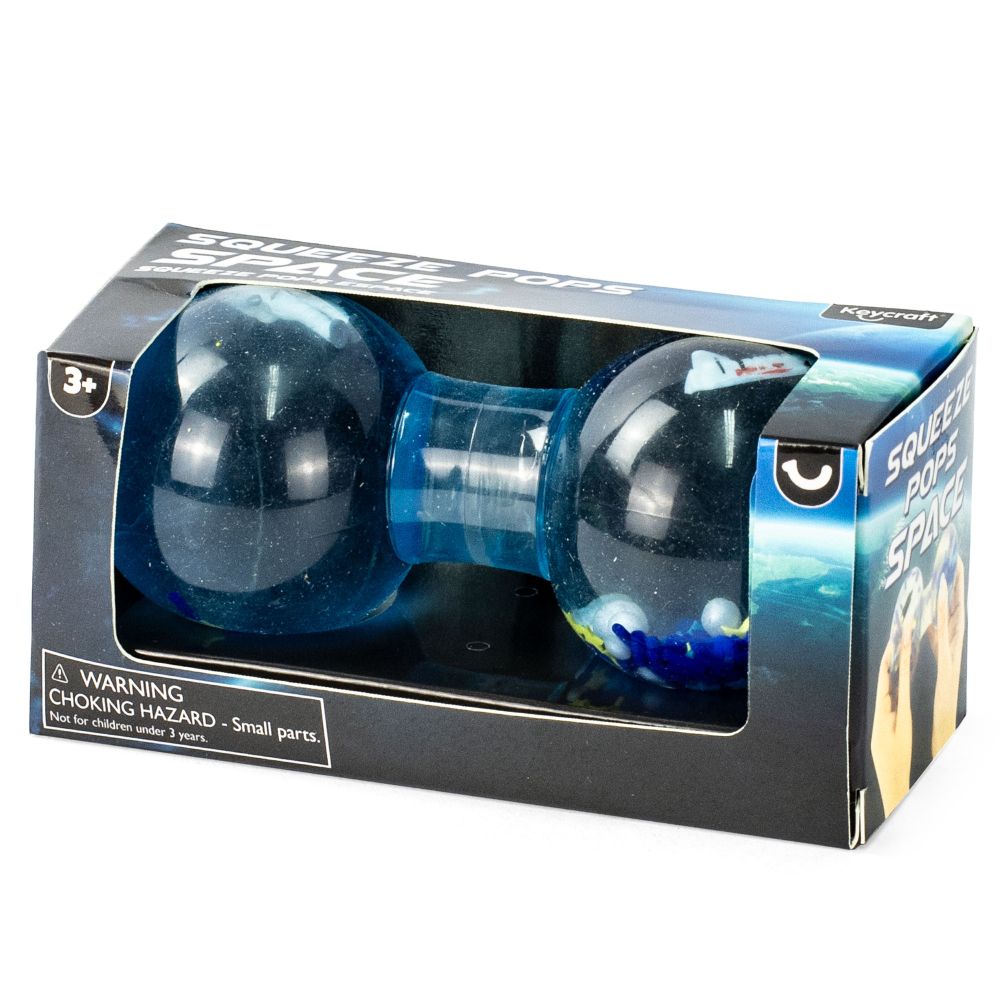 Meet the Squeeze Pops Space - your mesmerising companion for sensory fun! This unique toy features two spheres filled with water and glitter, connected in the middle. Hold one sphere in each hand and squeeze gently, then watch as a fascinating space scene comes to life and glides through from one sphere to another, creating a mesmerising display of swirling glitter. Perfect for sensory exploration, this toy provides hours of tactile delight and visual stimulation. Compact and easy to carry, it's ideal for on-the-go play. Get ready to squeeze, watch, and delight with the Squeeze Pops Space - the perfect wholesale toy for sensory seekers and curious minds!