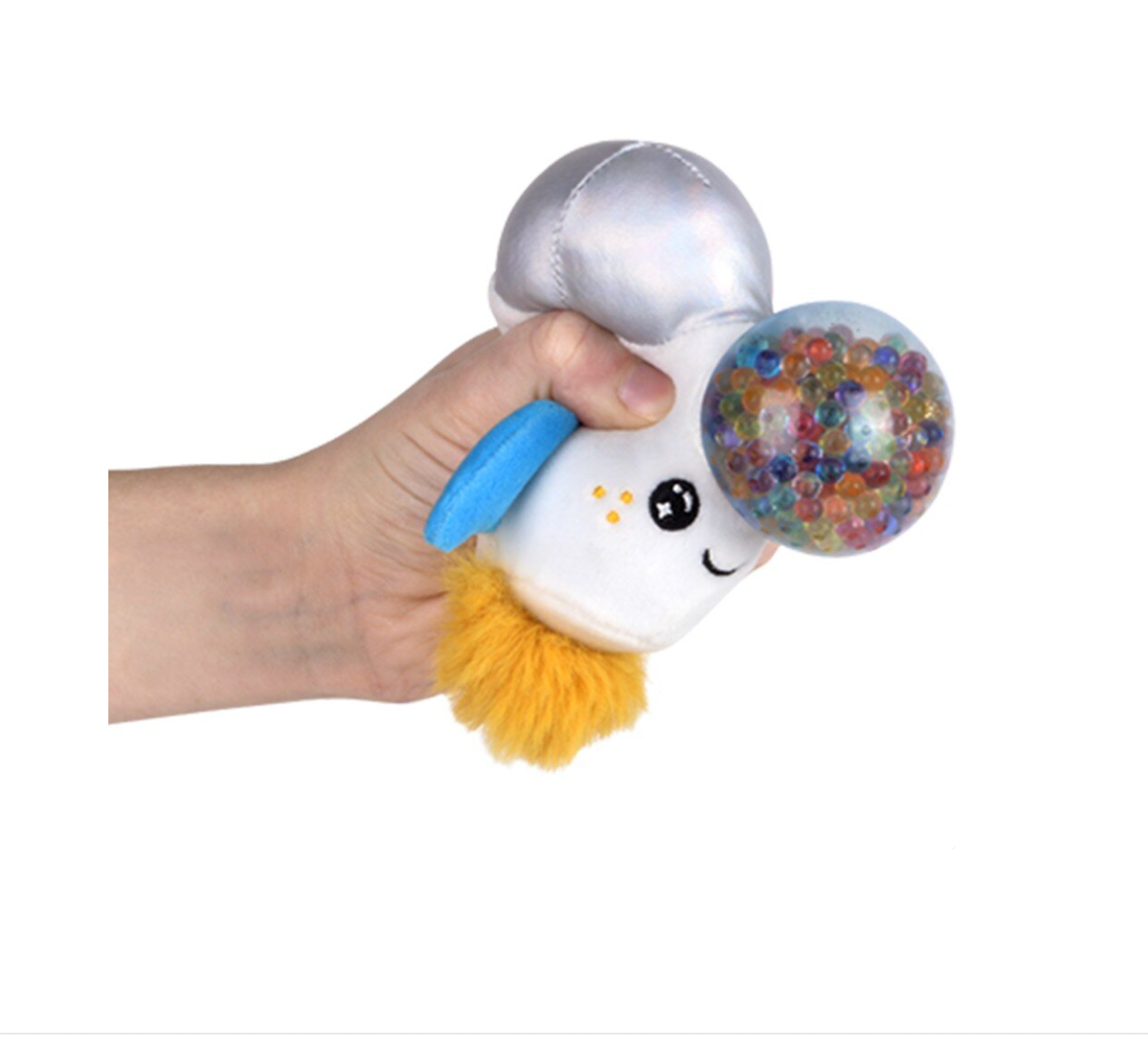 Our 3" Space Rocket Squeezy Bead Plush Balls have a soft plush outside with a bead-filled inside that is super satisfying to squish and squeeze.