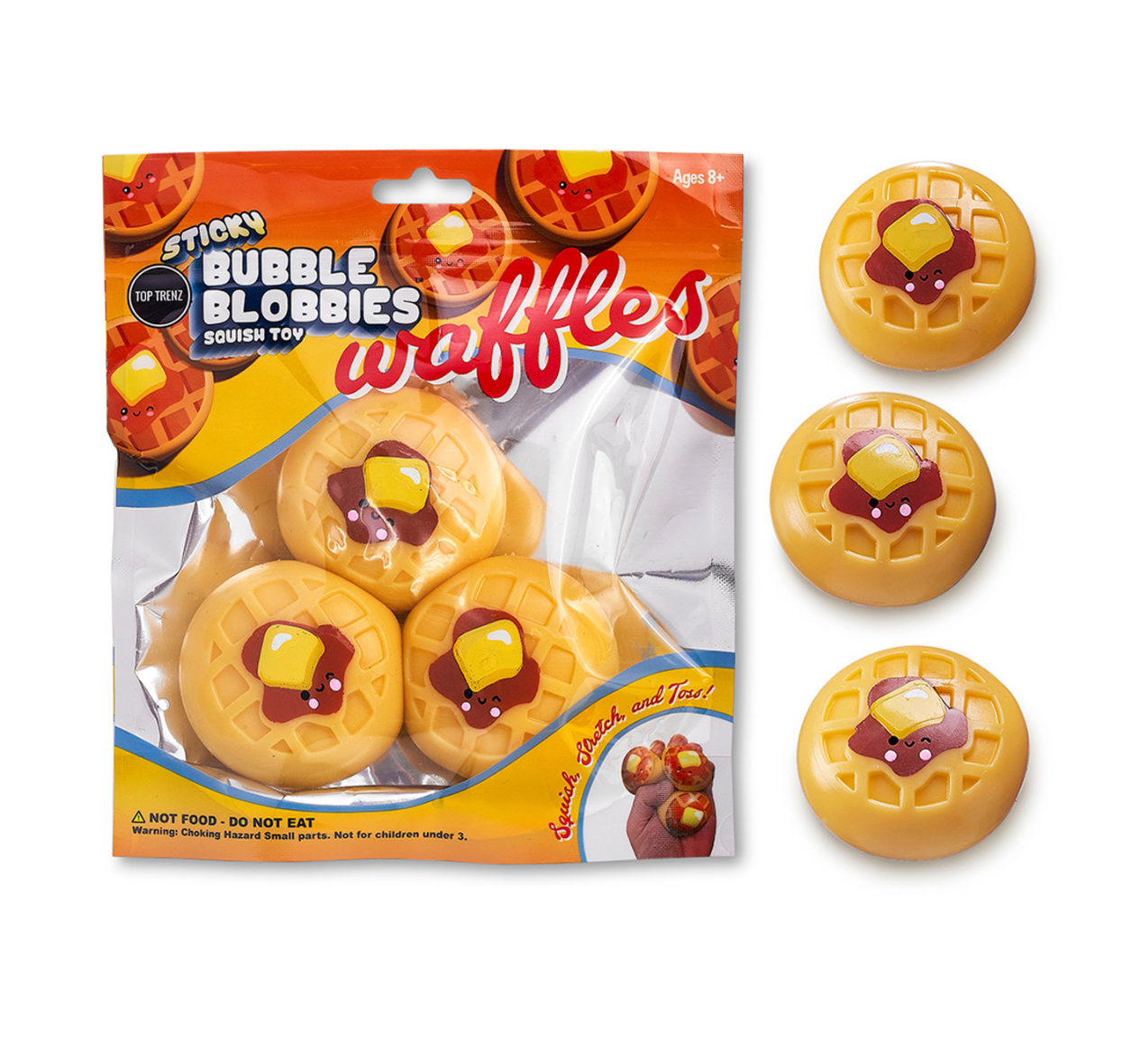 Squish, Stretch & toss! Watch them crawl the wall! The squishy ball you can squeeze, stack, stretch and stick to the wall. Now in new designs like this yummy waffle! Sticky Bubble Blobbies never lose their stickiness, even after you wash them and leave no sticky residue. Toss it on the wall and watch them crawl. Wash with soap and water to clean and refresh the stickiness. Great fidget squishy toy and makes a perfect party favor or gift! This Squishy stress relief toy has a wonderful tactile feeling that you will play with for hours!