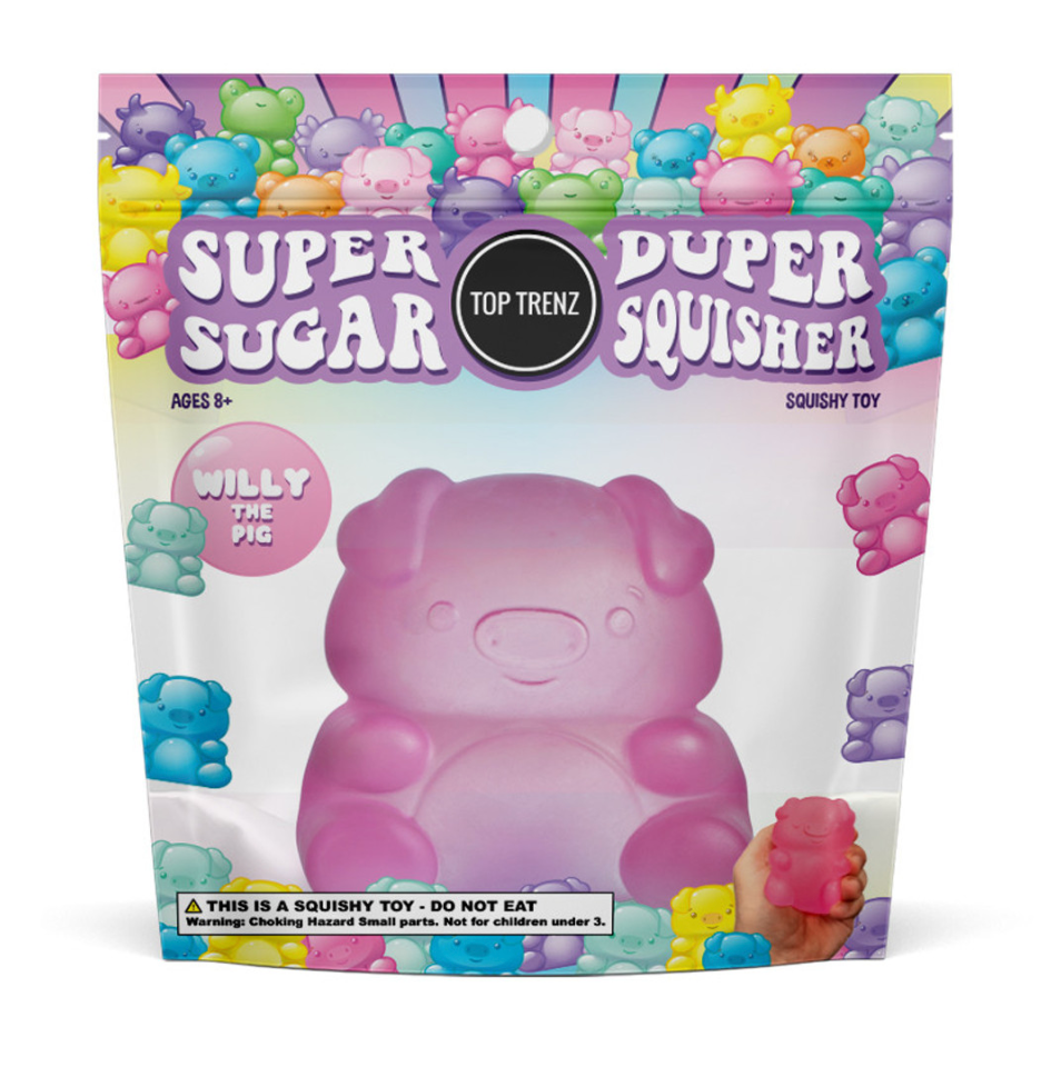 Meet the far-out fidget Pig that will have you squishing and squeezing for hours. Super Duper Sugar Squishers have a cool-to-the-touch exterior with a non-toxic gooey center that slowly bounces back to its original shape.