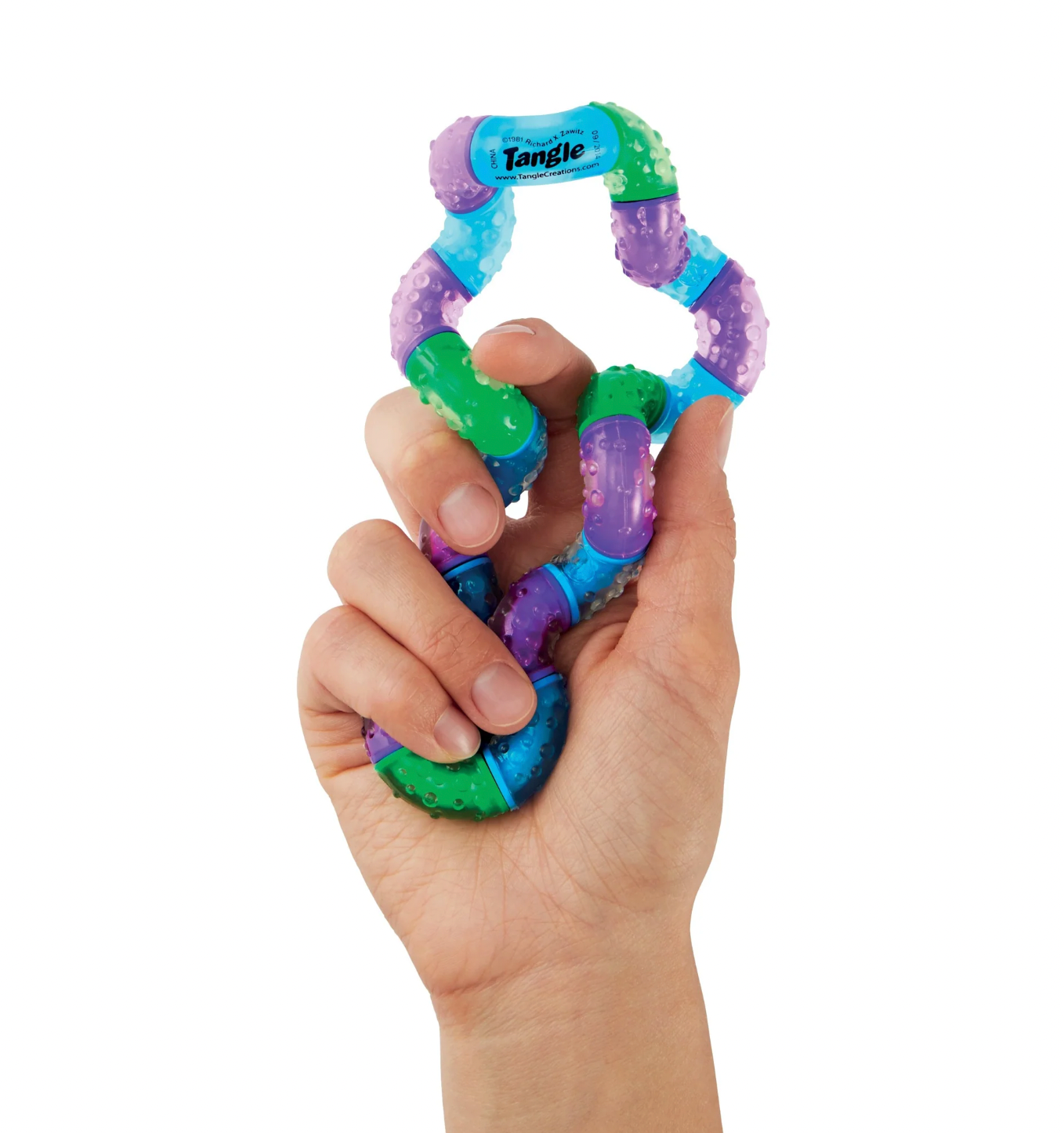The Tangle Therapy is an FDA Registered Medical Device that offers a twistable, ergonomic approach to hand therapy, minor stress relief, smoking cessation, refinement of fine motor skills, and much more. Soft, texturized rubber bumps on this Tangle provide a one-of-a-kind sensory and tactile experience in your hands. The motion is calming and fun!