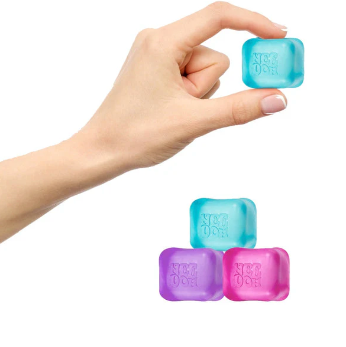 Sometimes smaller is better! From the best selling Nee Doh Nice Cube, the Nice Ice Baby is half the size so you can take it anywhere. Whether you are walking around at school or on a plane, its the perfect size for all adventures. This squish sensation feels soft when slow squished and firm when fast squished. Squeeze, stretch, squish, and watch it return to its square shape!