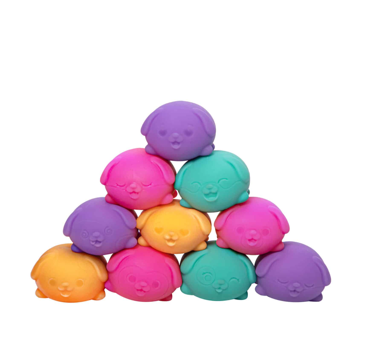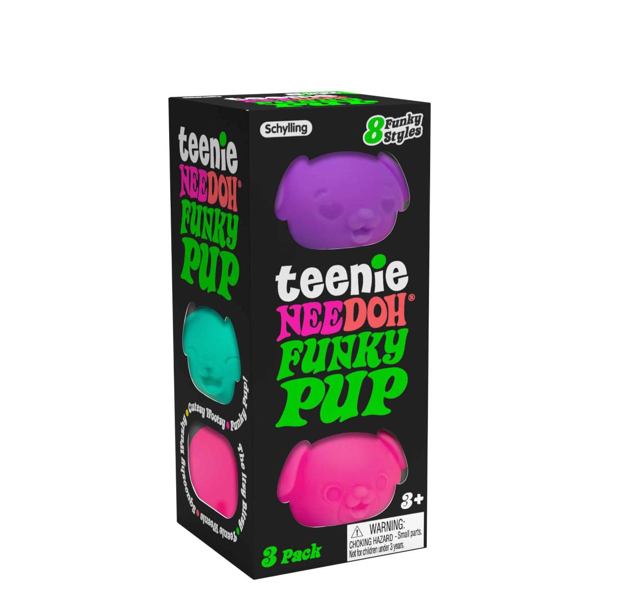 The groovy gratifying NeeDoh® is now available as a teeenie funky pup! Squeeze it, pull it, smush it. However you choose to manipulate this fun-dough filled animal it always returns to its original shape. You will experience an irresistible satisfaction that sooths your soul and the pups have 8 funky facial expressions! The mini size fits nicely in your hands! Kids and adults love Teenie NeeDoh Funky Pup as a gift, at the office, in school, or for any time you want take a quick chill moment. Available in four assorted bright colors that come in packs of three.