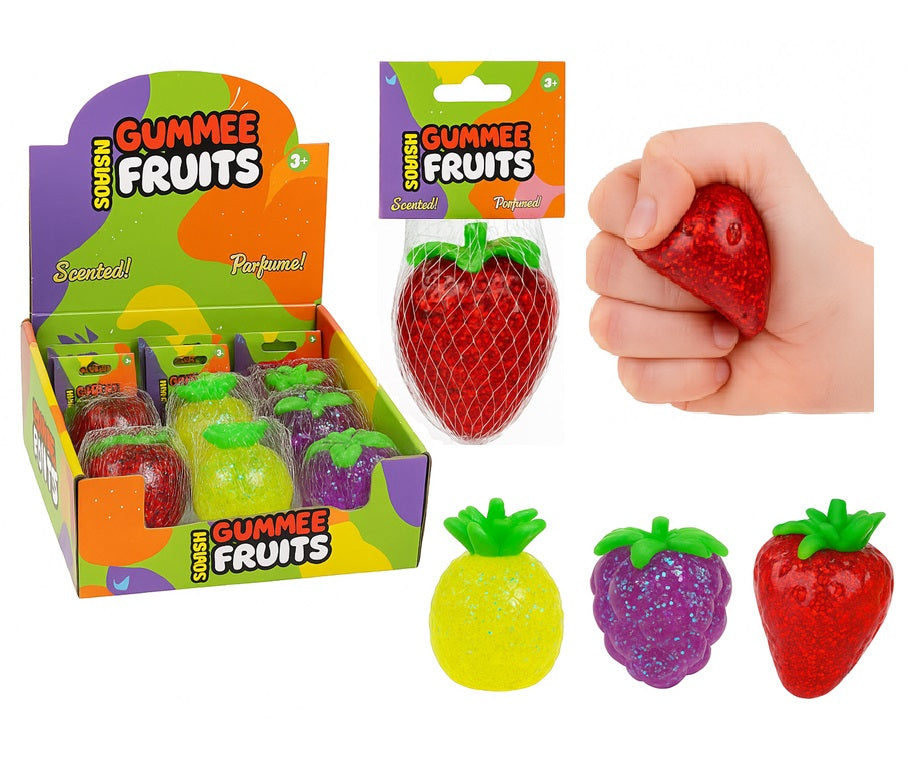 Enjoy the fresh fruity scent of these heavenly glitter gummee squish fruit! Comes with 3 Assorted Fruits