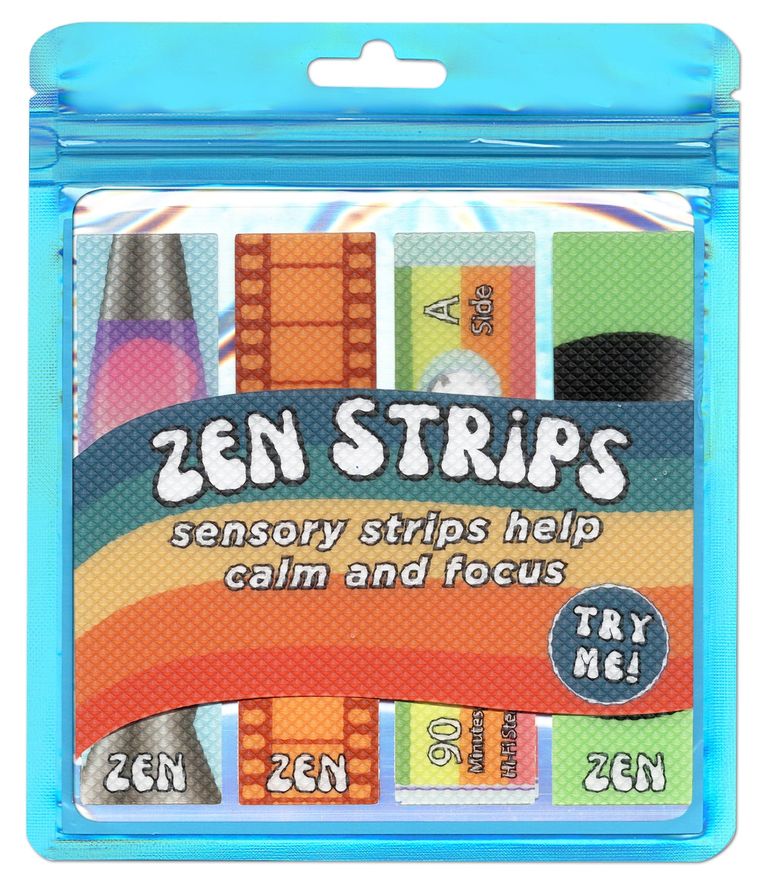 Zen Strips are essential sensory fidgets for classrooms, workspaces, and on-the-go. Designed to improve focus and manage stress, they can be easily peeled and stuck to phones, game controllers, water bottles, and more. Zen Strips provide tactile sensations that boost concentration and create a calming effect. Touch, swipe, scratch, or fidget with Zen Strips to enhance focus and tranquility throughout the day.