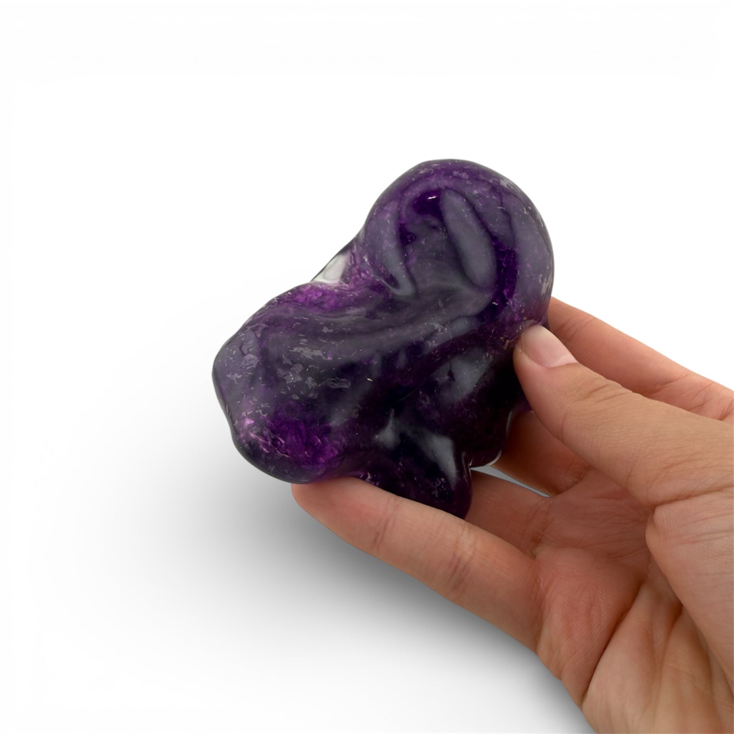 Introducing our exclusive Gemstone Crunch stress ball! This stress ball is available in three colors. It is filled with gel and slush beads, which give it a satisfying crunch sound. This ball is moldable and holds its shape