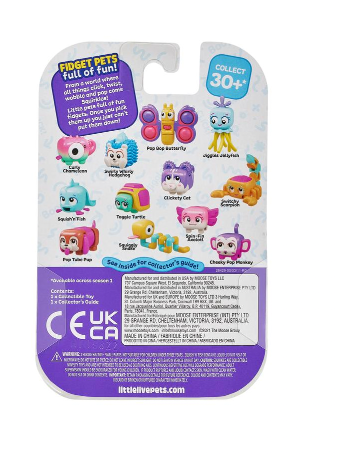 Get ready to experience the fidget fun like never before with Little Live Pets™ Squirkies™! These adorable fidget pets hail from a world filled with clicking, flicking, tangling, and popping, and they are here to bring endless fun to kids and collectors alike. With over 30 cute and collectible characters to discover, Squirkies come to life with unique interactive fidget features that will keep you entertained for hours.